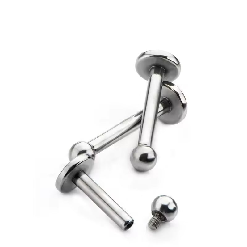 Labret basic completo di pallina e di filettatura interna in titanio da implantologia f136 anallergico e certificato. Varie dimensioni . Per labbra e orecchie