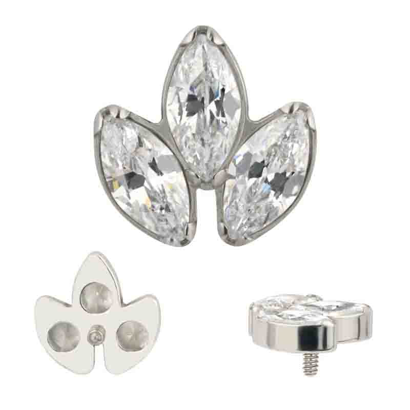 Gioiello tre pietre cz stone neutre taglio marquise in titanio da implantologia f136 anallergico e certificato completo di labret. Filettatura interna
