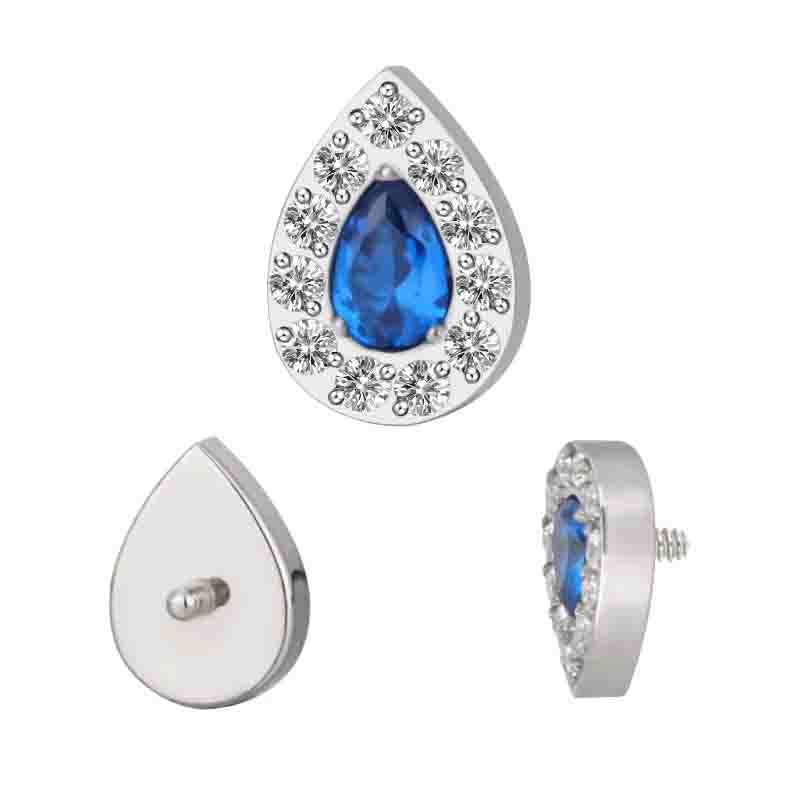 Gioiello taglio pear di colore blu conpietre cz stone neutre incastonate esternamente .Titanio da implantologia f136 certificato, anallergico e completo di labret