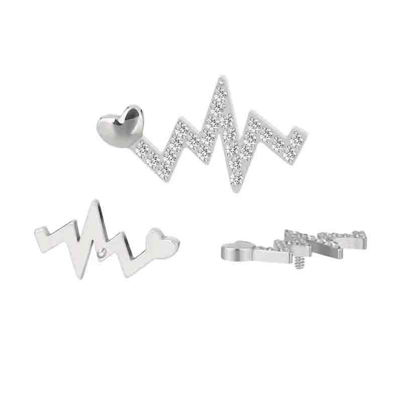 Gioiello Heart beat in titanio da implantologia f136 anallergico e certificato, con cuore e battito cardiaco , pietre cz stone neutre e completo del suo labret