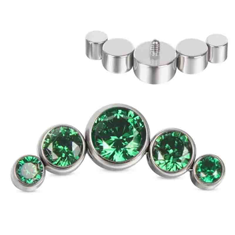 Gioiello a 5 pietre taglio round verdi crystal zircon in titanio astm f136 da implantologia certificato . Filettatura interna e completo del suo labret . Sicuro e anallergico