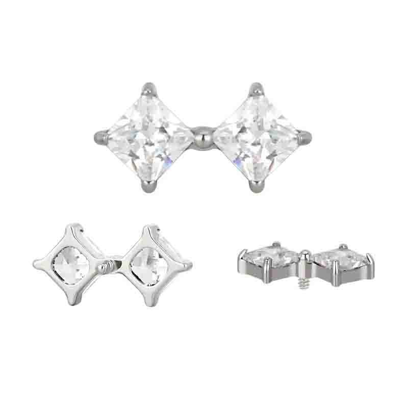 Gioiello in titanio astm f136 da implantologia certificato con 2 pietre cz stone neutre taglio princess . Filettatura interna e completo del suo labret . Sicuro e anallergico .