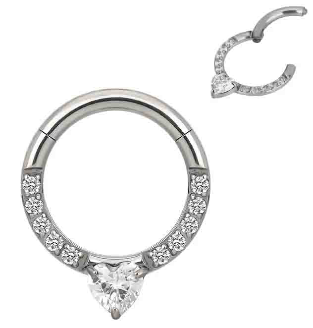 Clicker piccolo cuore in titanio astm f136 da implantologia certificato con facile apertura e chiusura a scomparsa , pietre cz stone taglio round e heart . Sicuro e anallergico . Misura 1.2 mm x 8 mm