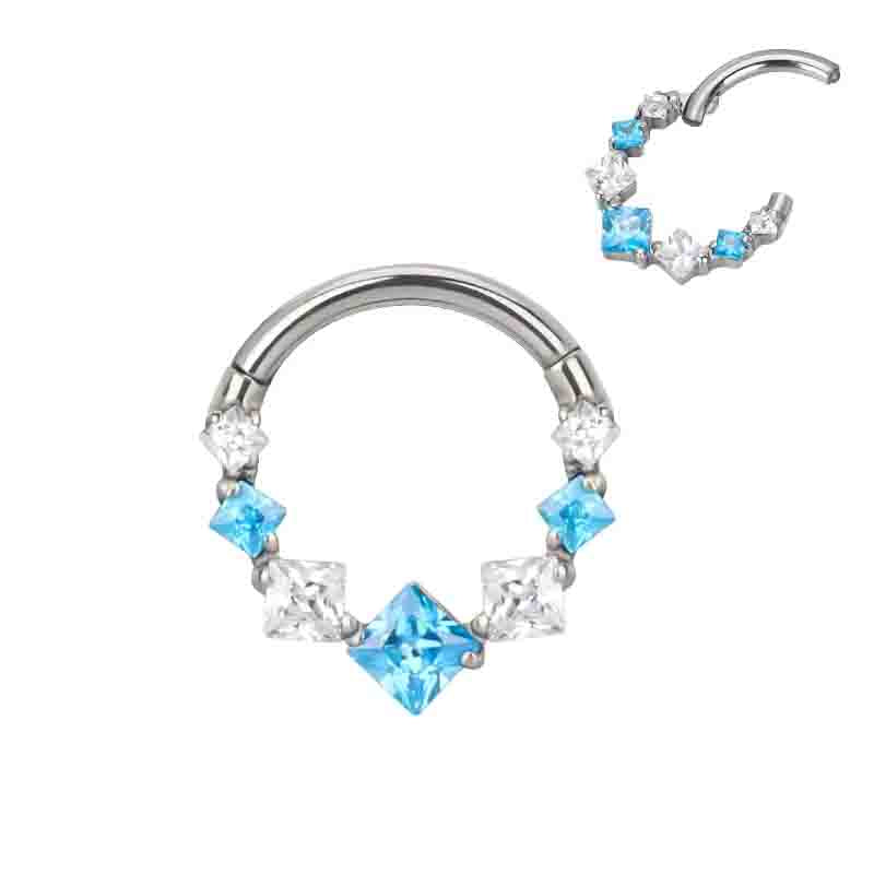 Clicker in titanio astm f136 da implantologia certificato con pietre cz stone acqua e neutre a taglio princess , facile apertura e chiusura a scomparsa . Sicuro e anallergico . Misura 1.2 mm x 8 mm