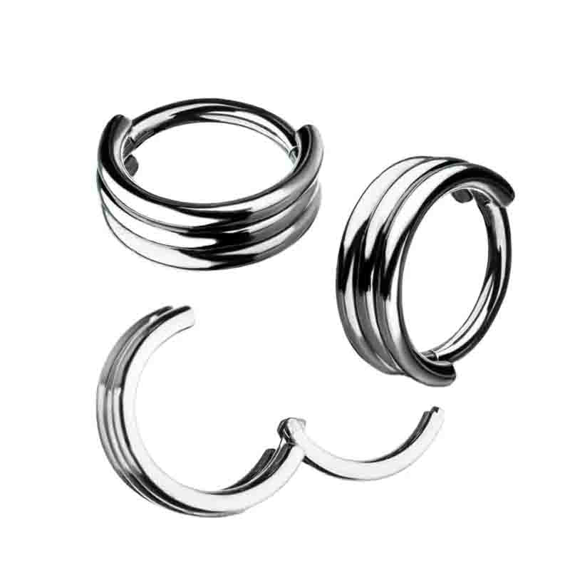 Clicker in titanio astm f136 da implantologia certificato , liscio senza lavorazioni con tre anelli saldati insieme a formare un unico gioiello . Facile apertura e chiusura a scomparsa . Sicuro e anallergico . Misura 1.2 mm x 10 mm