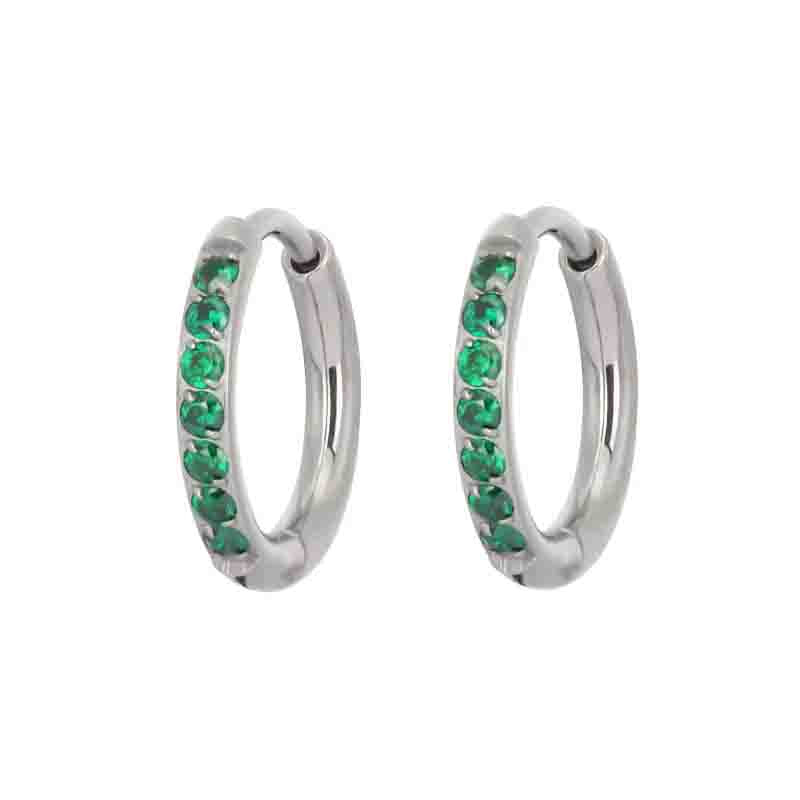 Clicker in titanio astm f136 da implantologia certificato con pietre cz stone neutre taglio round verdi sul lato corto. Facile apertura e chiusura classica . Sicuro e anallergico . misure 1.2 x 8 mm