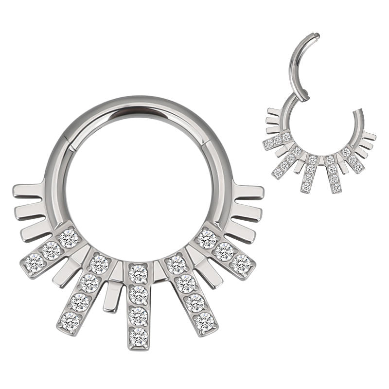 Clicker in titanio astm f136 da implantologia certificato con raggi colmi di pietre cz stone taglio round . Facile apertura e chiusura a scomparsa . Sicuro e anallergico . misure 1.2 x 8 mm